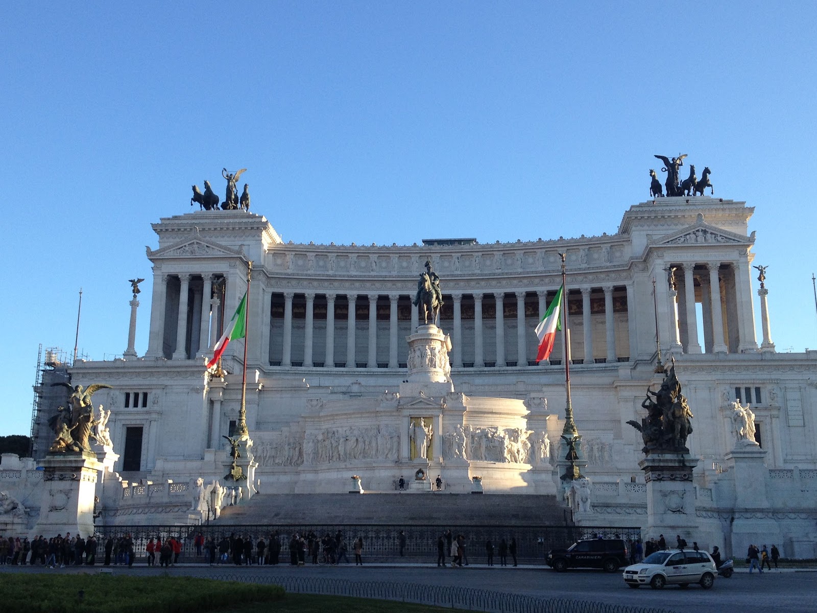 It became a beautiful day and as I walked pasted this Roman buildings I could not imagine that I am living here. Actually living in Roma! Crossing the streets is like playing chicken. There are often no pedestrian cross lights but one must embrace the Rondos without any fear and take the leap in front of cars, buses, trucks and Vespas and pray that they will stop. Which they always do, but sometimessss just sometimes your life flashes before your eyes for a second as the bus rapidly breaks, squeaking its tires to allow you to cross. The key trick to survival is take the leap with a group in hope that if someone gets hit the odds are in your favor.